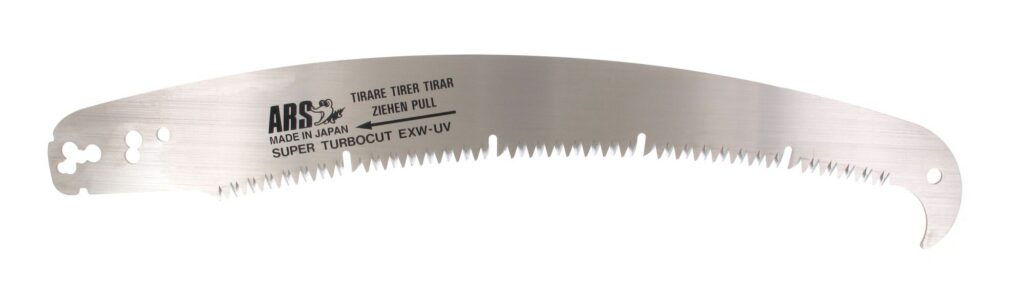 De ARS EXW-UV-1.8 is een professionele tweedelige telescopische snoeizaag van Japanse topkwaliteit. Deze zaag combineert een lichtgewicht aluminium telescoopsteel met een recht hol geslepen TURBOCUT-zaagblad van 340 mm, voorzien van uitsparingen (losgaten). Deze losgaten verminderen de weerstand tijdens het zagen en zorgen voor een optimale afvoer van zaagsel, wat resulteert in een bijzonder soepele, snelle en zuivere snede. De lengte is variabel van 120 tot 180 cm (exact 1.220 – 1.820 mm) en is ideaal voor snoeiwerk op middelhoge hoogte — recht vanaf de grond, zonder trap of ladder. De stabiele constructie en comfortabele antislip greep zorgen voor maximale controle en efficiëntie. Losse onderdelen zijn verkrijgbaar en de zaag valt onder de 25 jaar ARS garantie.