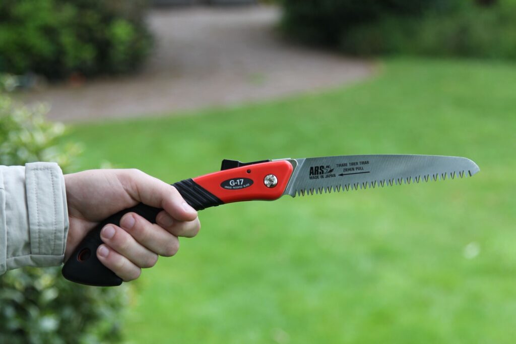 De ARS G-17 is een professionele inklapbare snoeizaag met een hol geslepen, spits toelopend zaagblad van 170 mm. Het gepatenteerde TURBOCUT-zaagblad zaagt snel, soepel en met weinig kracht, dankzij de scherpe tandzetting en slimme plaatsing van de tanden. Het blad is vervaardigd uit gehard, verchroomd staal, waardoor het extra sterk, roestbestendig en eenvoudig te onderhouden is. De kunststof antislip handgreep ligt goed in de hand en de veiligheidssluiting zorgt voor veilig gebruik in zowel open als gesloten stand. Losse onderdelen zijn verkrijgbaar en de zaag valt onder de 25 jaar ARS garantie.