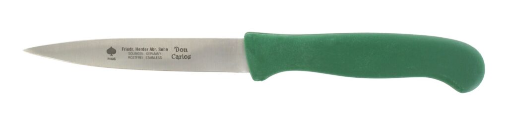 De Friedrich Herder F8668 is een professioneel mes uit Solingen met een 110 mm RVS lemmet. Dit compacte en wendbare mes wordt veel gebruikt als vismes en is ideaal voor nauwkeurig snijwerk in de visverwerking, voedingsindustrie en professionele keukens. Het scherpe roestvrijstalen lemmet biedt uitstekende snijprestaties, terwijl het groene ergonomische kunststof handvat met antislipstructuur zorgt voor een veilige en stabiele grip. De vertrouwde Solingen kwaliteit staat garant voor duurzaamheid, scherpte en betrouwbaarheid.