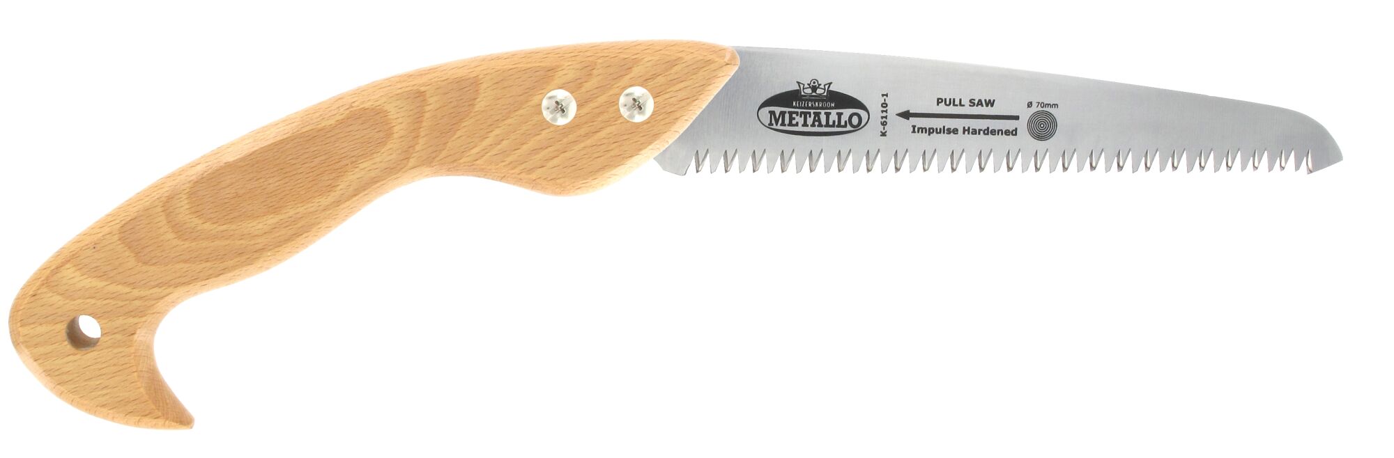 De Metallo K-6110W is een snoeizaag met houten handvat en recht zaagblad, voorzien van impulsgeharde tanden en 3-voudige slijping. Dankzij de unieke tandzetting zaag je moeiteloos door houtachtige materialen, maar ook door kunststof en PVC. Een recht blad is ideaal voor gecontroleerd en horizontaal snoeiwerk of goed bereikbare takken, omdat je maximale controle hebt over de zaagbeweging. De impulsgeharde tanden zorgen voor een lange levensduur en blijven tot drie keer langer scherp dan traditionele zagen. De aanbevolen zaagdikte is circa 80 mm. De totale lengte is 375 mm en het blad is 180 mm lang.