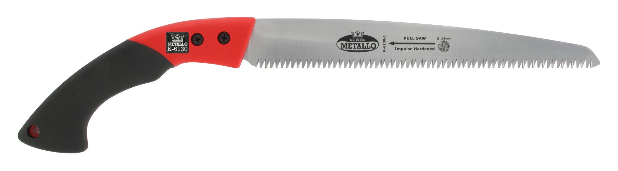 De Metallo K-6130 is een hoogwaardige snoeizaag met recht zaagblad, impulsgeharde tanden en 3-voudige slijping. Deze zaag levert een vlijmscherpe snede en is ideaal voor gecontroleerd en nauwkeurig zagen. Een recht blad is bijzonder geschikt voor horizontaal snoeiwerk of takken die goed bereikbaar zijn, omdat je maximale controle hebt over de zaagbeweging en de zaagsnede. Dankzij de uitgebalanceerde lengte is de zaag zeer wendbaar en efficiënt in gebruik. De impulsgeharde tanden gaan tot drie keer langer mee dan traditionele zagen en vragen weinig onderhoud. De aanbevolen zaagdikte is circa 105 mm. De totale lengte van de zaag is 450 mm en het blad is 270 mm lang. De zaag wordt standaard geleverd met een gratis holster, 10 jaar garantie en reserveonderdelen.