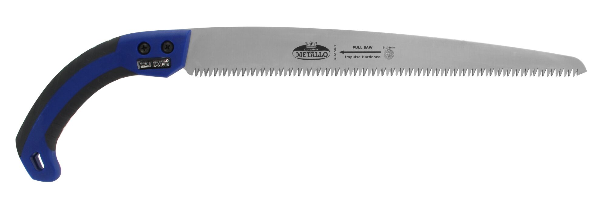 De Metallo K-6150B is een Blue-Line snoeizaag met recht zaagblad, impulsgeharde tanden en 3-voudige slijping. Deze zaag levert een vlijmscherpe snede en is ideaal voor gecontroleerd en precies zagen. Een recht blad is perfect voor horizontaal snoeiwerk of goed bereikbare takken, omdat je maximale controle hebt over de zaagbeweging en de zaagsnede. De impulsgeharde tanden zorgen voor een lange levensduur en blijven tot drie keer langer scherp dan traditionele zagen. De aanbevolen zaagdikte is circa 135 mm. De totale lengte is 505 mm en het blad is 350 mm lang. De zaag wordt standaard geleverd met een gratis holster.