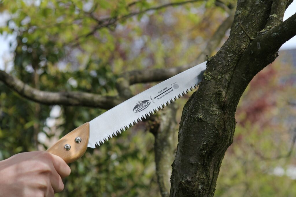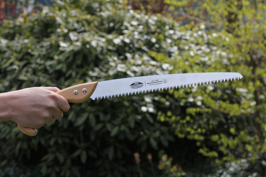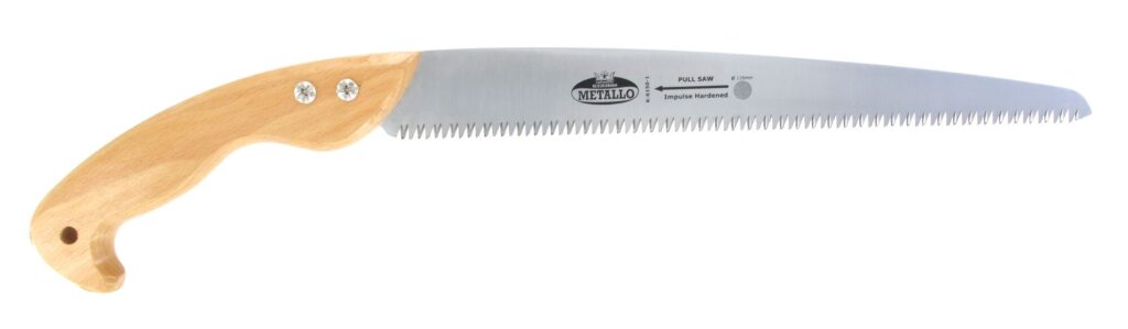 De Metallo K-6150W is een snoeizaag met recht zaagblad en houten handvat, voorzien van impulsgeharde tanden en 3-voudige slijping. Dankzij de unieke tandzetting zaag je moeiteloos door houtachtige materialen, maar ook door kunststof en PVC. Een recht blad is ideaal voor horizontaal snoeiwerk of goed bereikbare takken, omdat je maximale controle hebt over de zaagbeweging en de zaagsnede. De impulsgeharde tanden zorgen voor een lange levensduur en blijven tot drie keer langer scherp dan traditionele zagen. De aanbevolen zaagdikte is circa 135 mm. De totale lengte is 530 mm en het blad is 350 mm lang.