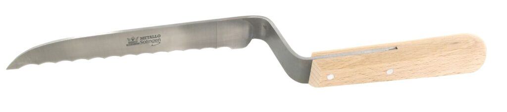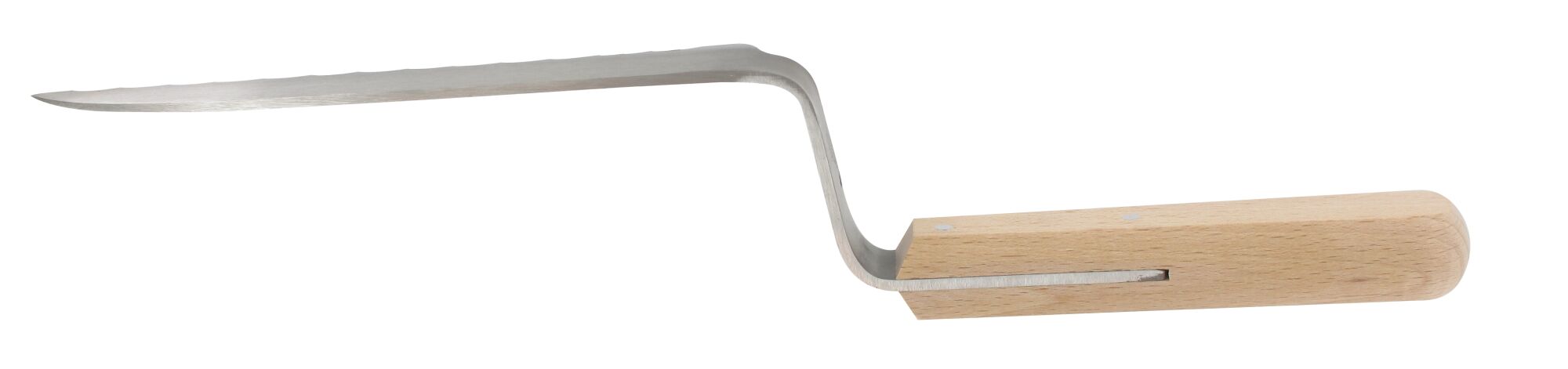 The Metallo 963011 spinach knife, also known as a pot knife or stripping knife, is widely used for harvesting spinach and other leafy greens. Thanks to its characteristic shape, the knife always provides the correct cutting angle for an efficient and clean harvest. The 150 mm serrated blade is made from high-quality stainless steel, known for its durability, wear resistance and long-lasting sharpness. The blade is hardened and tempered for optimal performance. The traditional wooden handle provides a solid grip and a natural look. To preserve the handle’s quality, dishwasher cleaning is not recommended. Hand washing and immediate drying is advised.