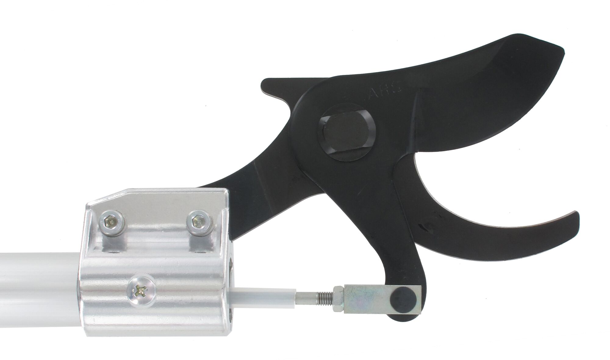 The ARS 185-1.8 is a heavy-duty long reach lopper made in Japan, designed for intensive professional use. The lightweight aluminum pole has a fixed length of 180 cm, giving an effective reach of approximately 2.8 meters including body height — ideal for pruning at height without a ladder. The fully forged hardened chrome-plated Japanese steel blade ensures maximum sharpness, strength, and rust resistance. Thanks to the powerful lever mechanism, it easily cuts branches up to Ø 45 mm, even hard or dead wood. The handle is 180° rotatable, allowing maximum flexibility at different cutting angles. Its robust construction, easy disassembly and availability of spare parts guarantee a long service life. A trusted choice for arborists, landscapers and professionals who demand power, precision and durability.