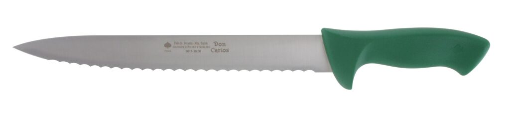 Fish-meat knife 300 mm, serrated, green, stainless steel